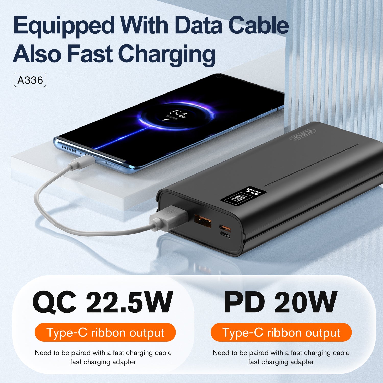 Aspor A336 20000mAh 22.5W PD + QC3.0 Fast Charging Power Bank LCD Display