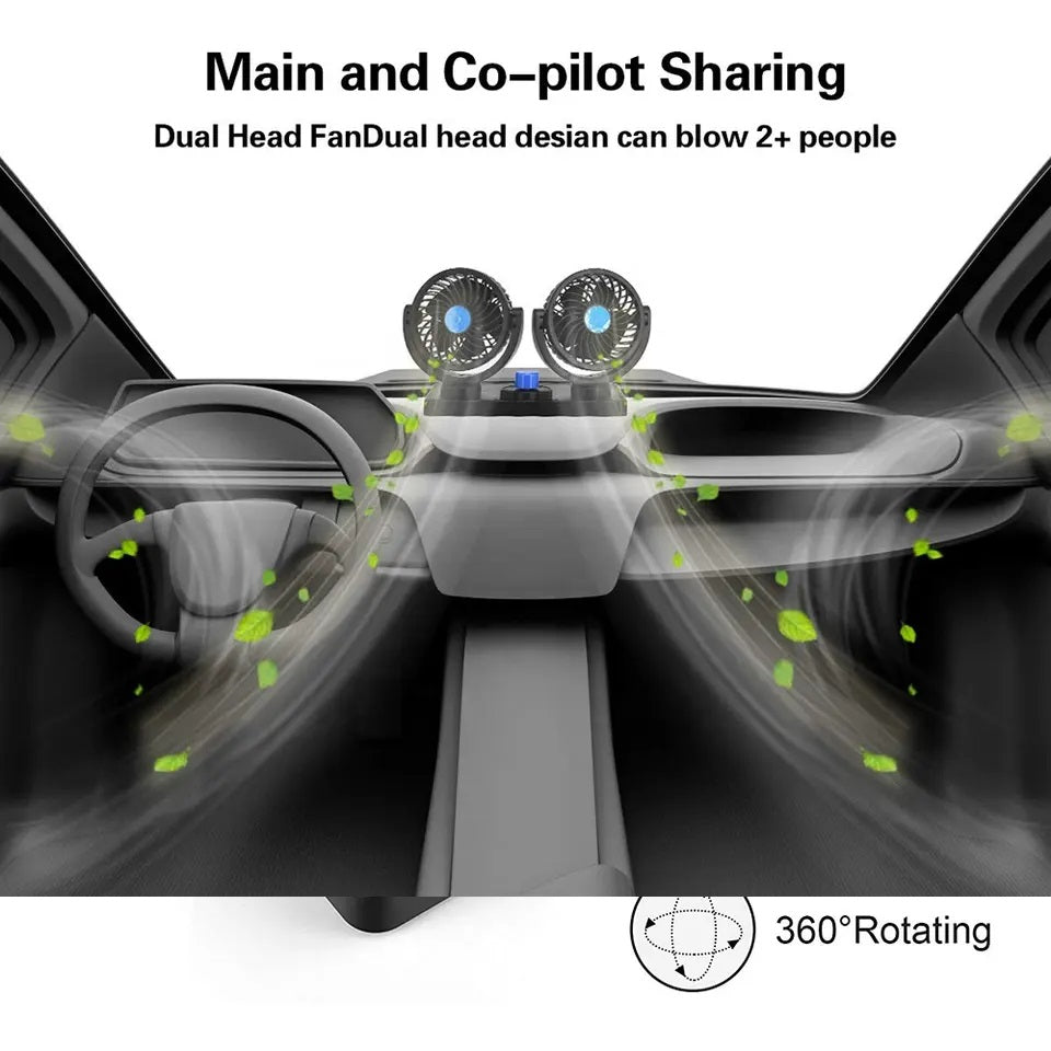 HX T304 Double Head 24V DC Vehicle Car Fan 360° Rotating Cooling Fan for Truck SUV Auto Home Use