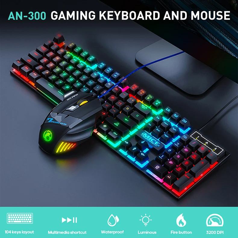 IMICE AN-300 Usb Wired Gaming Keyboard and Mouse Combo with Backlit