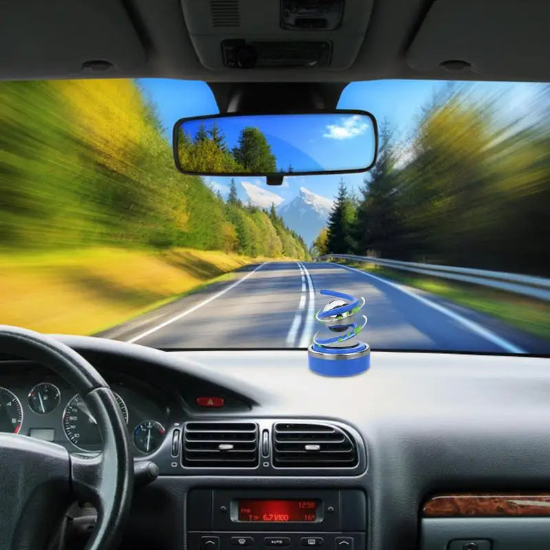 Solar Rotating Car Fragrance Creative Aluminium Alloy Resuspension Ball Car Centre Console Small Ornaments Car Aroma